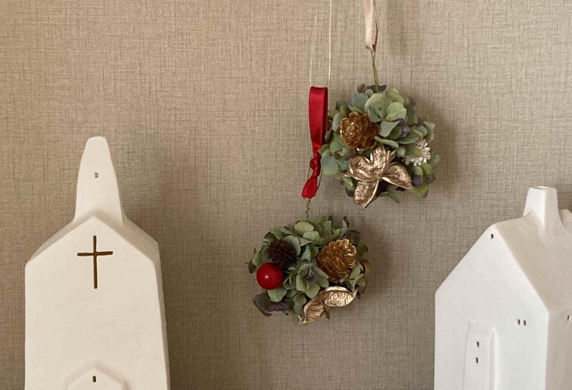 北欧のクリスマスをイメージして、フラワーボールのオーナメントを作ります。
